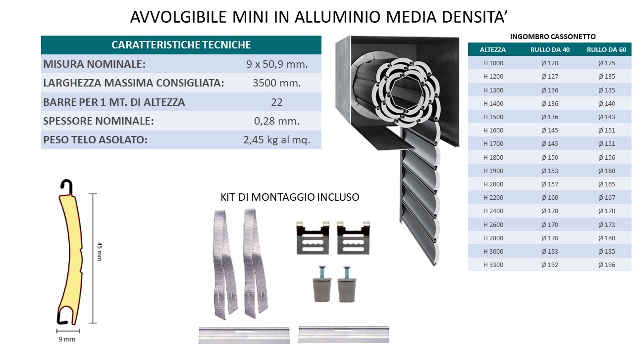 TAPPARELLA AVVOLGIBILE MINI IN ALLUMINIO COIBENTATO MEDIA DENSITA'